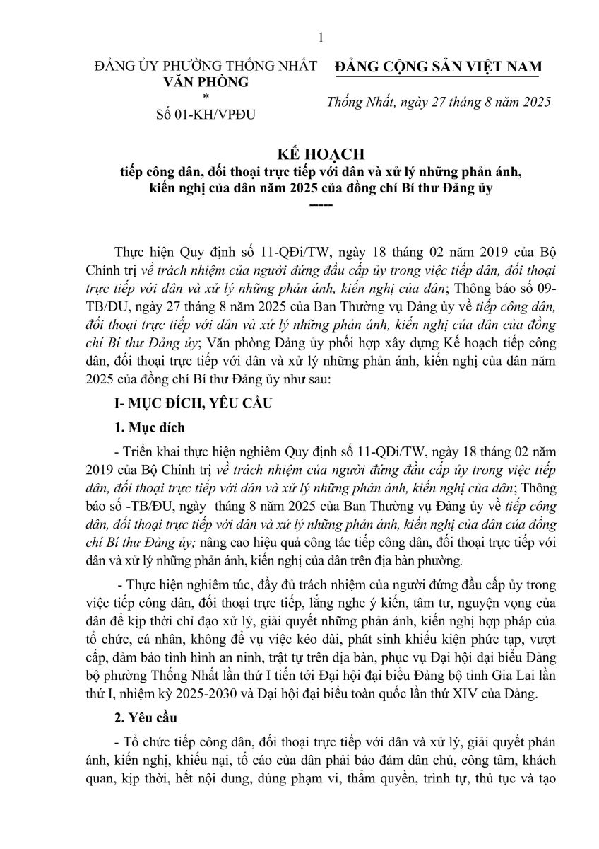 Kế hoạch tiếp công dân, đối thoại trực tiếp với dân và xử lý những phản ánh, kiến nghị của dân năm 2025 của đồng chí Bí thư Đảng ủy