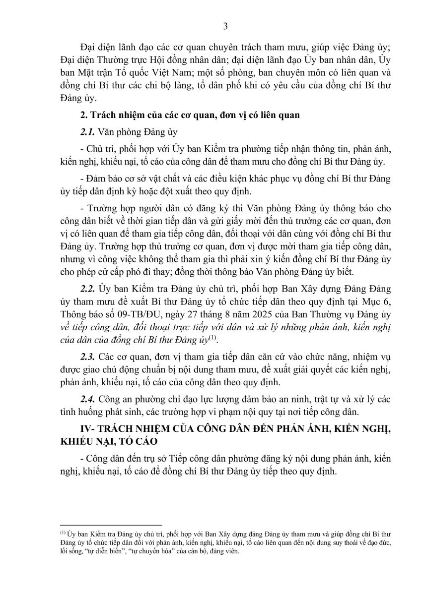 Thông báo số 09/TB/ĐU ngày 27/8/2025 về tiếp công dân, đối thoại trực tiếp với dân và xử lý những phản ánh, kiến nghị của dân của đồng chí Bí thư Đảng ủy