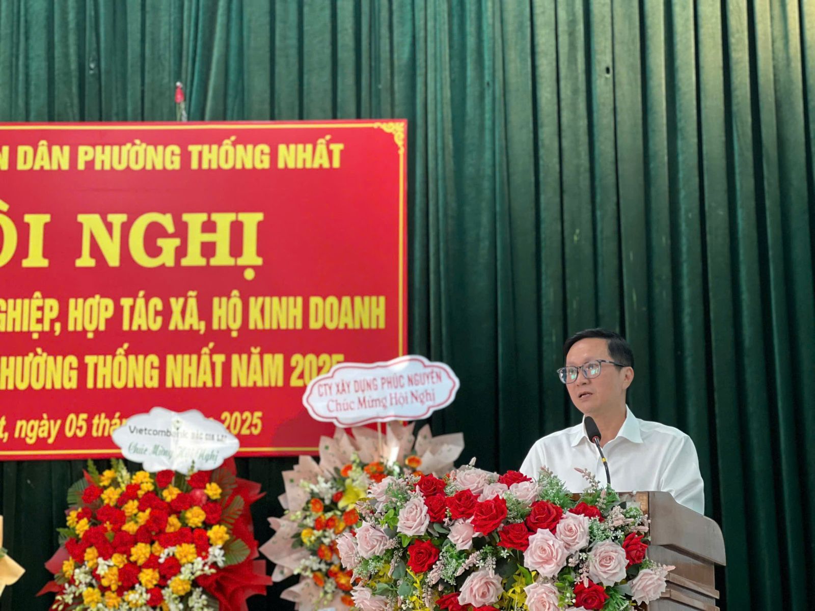 Đồng thời, đồng chí giao nhiệm vụ UBND phường và các cơ quan chuyên môn tiếp tục đổi mới, nâng cao hiệu quả công tác cải cách hành chính; đảm bảo mọi thủ tục liên quan đến doanh nghiệp, hợp tác xã và hộ kinh doanh được giải quyết nhanh chóng, đúng quy định, tạo môi trường thuận lợi nhất để phát triển sản xuất - kinh doanh; tăng cường công tác phối hợp giữa chính quyền phường với các doanh nghiệp; kịp thời tháo gỡ khó khăn, vướng mắc về đất đai, trật tự đô thị, thuế, môi trường; khuyến khích các doanh nghiệp, hợp tác xã và hộ kinh doanh tham gia tích cực hơn nữa các hoạt động an sinh xã hội, xây dựng đô thị văn minh, chuyển đổi số cộng đồng và đồng hành cùng địa phương trong các chương trình phát triển kinh tế - xã hội. Trong thời gian đến, Đảng ủy, chính quyền phường cam kết tiếp tục đồng hành, hỗ trợ doanh nghiệp bằng tinh thần trách nhiệm, sự cầu thị và phương châm “5 cùng”: Cùng nhau lắng nghe - Cùng nhau bàn bạc - Cùng nhau thực hiện - Cùng nhau chia sẻ kết quả - Cùng nhau tháo gỡ khó khăn xây dựng phường Thống Nhất trở thành địa bàn có môi trường đầu tư thuận lợi, minh bạch, là “điểm đến đáng tin cậy” của các tổ chức, doanh nghiệp trong và ngoài tỉnh.