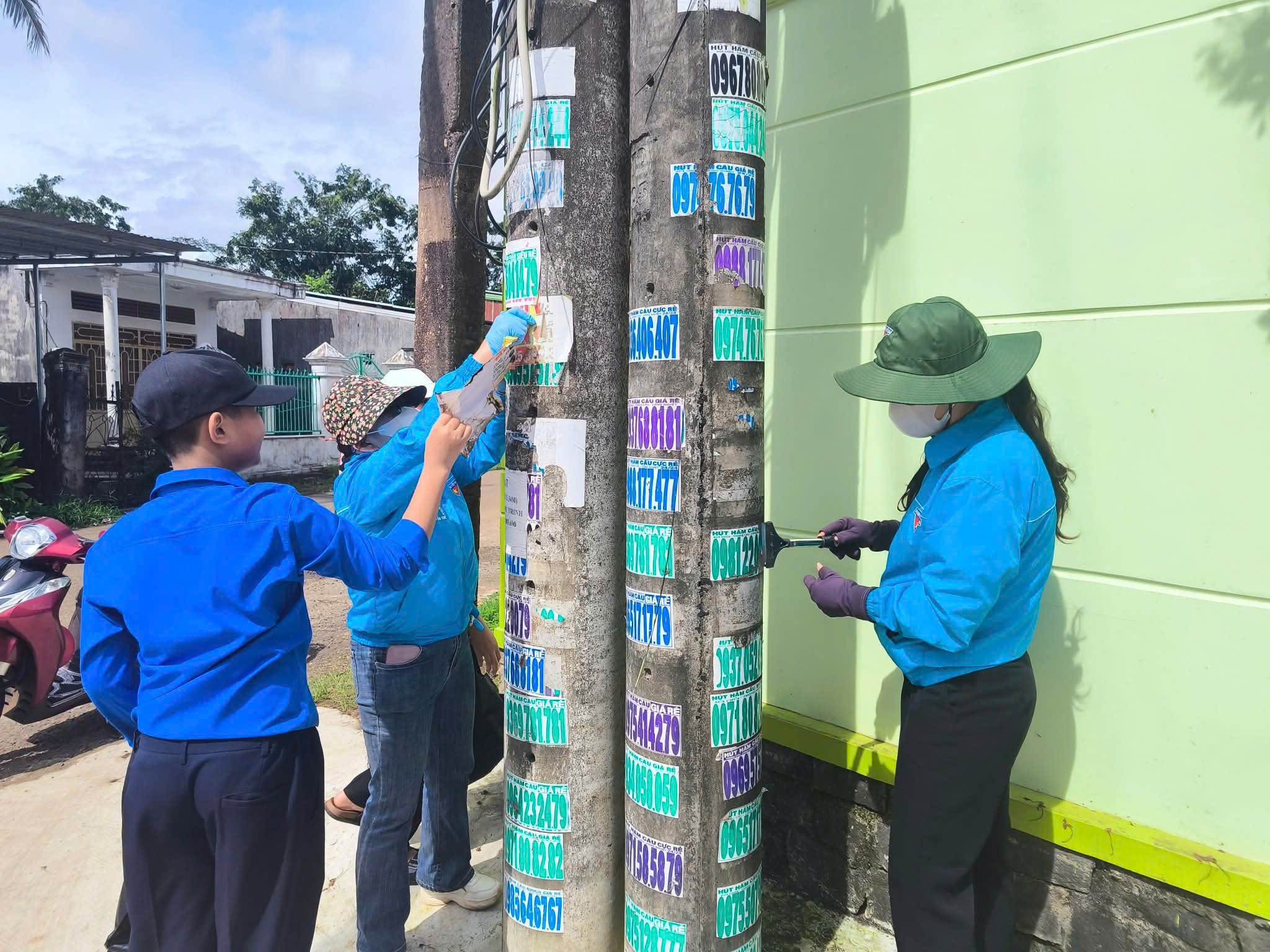 Đoàn viên, thanh niên phường Thống Nhất tham gia xóa quảng cáo, rao vặt sai quy định