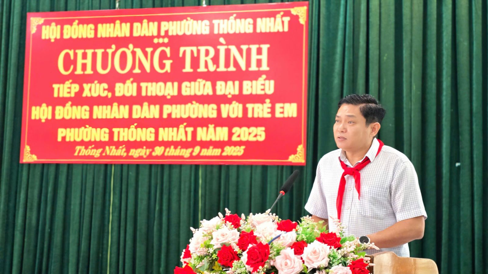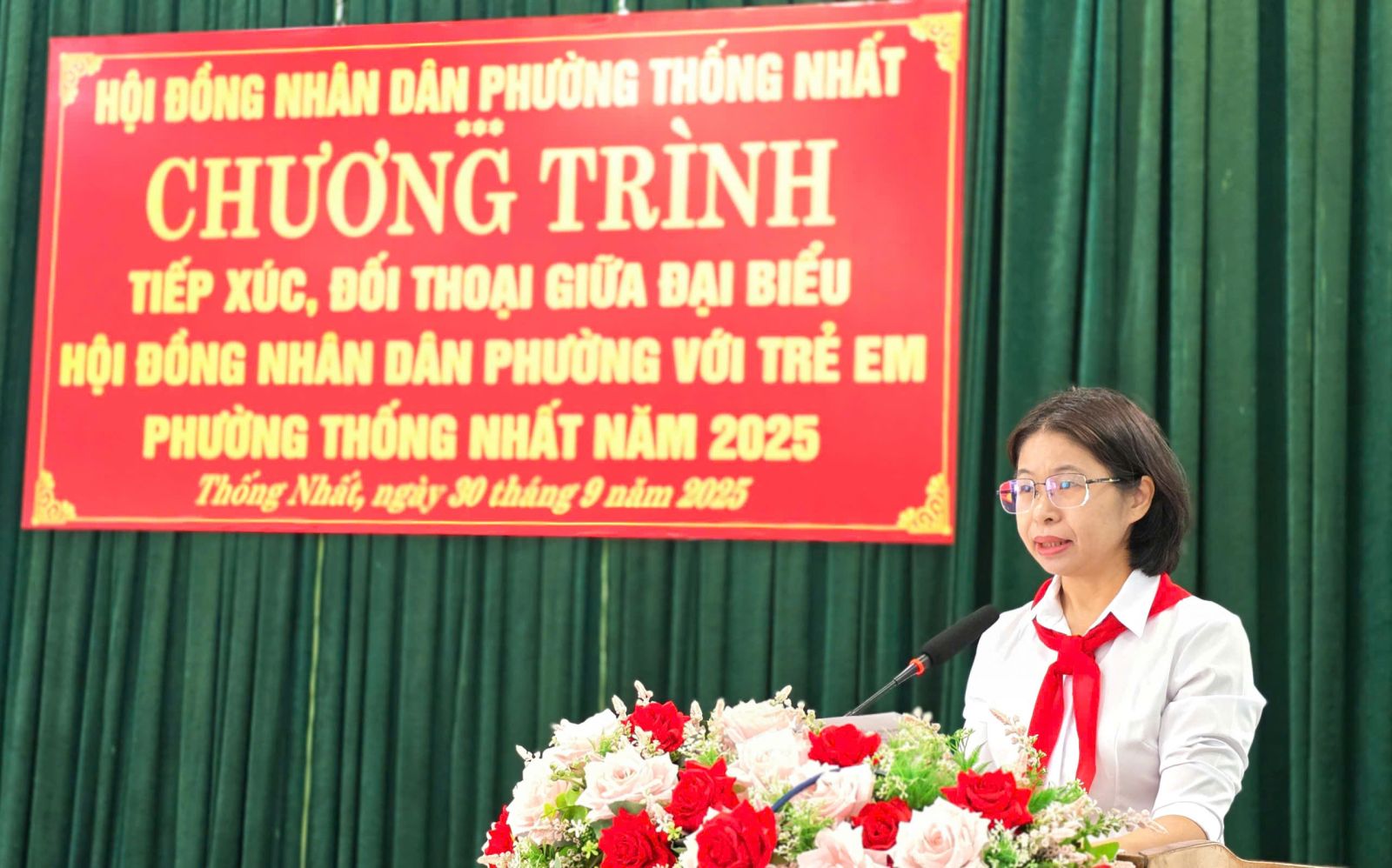 Phát biểu tại buổi tiếp xúc, Đồng chí Trần Thị Hồng Nguyệt Bí thư Đảng ủy, Chủ tịch HĐND phường đánh giá cao tinh thần chủ động, mạnh dạn của các em học sinh. Đồng thời, đề nghị cấp ủy, chính quyền, Mặt trận và các đoàn thể tiếp tục nghiên cứu, có giải pháp quan tâm, chăm lo, bảo vệ quyền lợi chính đáng, tạo môi trường sống an toàn, lành mạnh cho trẻ em.