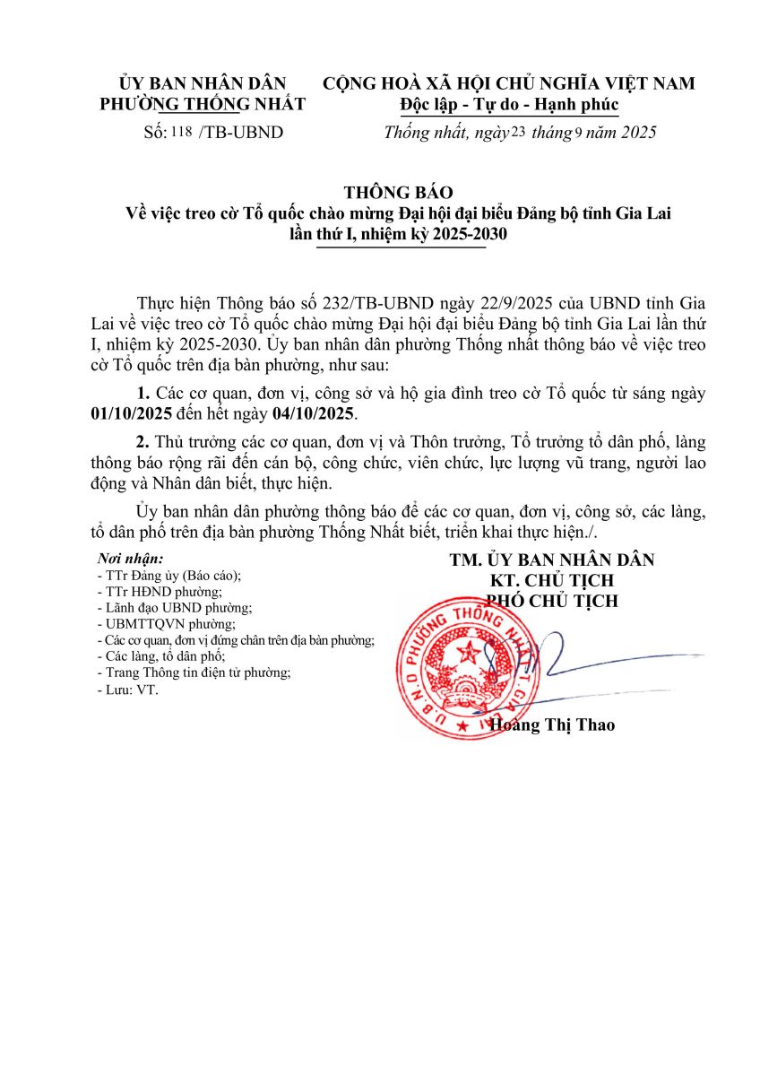 Thông báo treo cờ Tổ quốc chào mừng Đại hội đại biểu Đảng bộ tỉnh Gia Lai lần thứ I, nhiệm kỳ 2025-2030